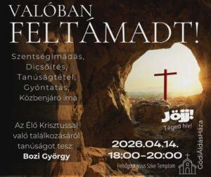 Krisztus valóban föltámadt! Ma is él! Ma is lehet Vele találkozni! Erről fog tanúságot tenni egy kedves testvérünk, Bozi Gyuri, Pomázról a jövő heti dicsőítő Szentségimádáson!