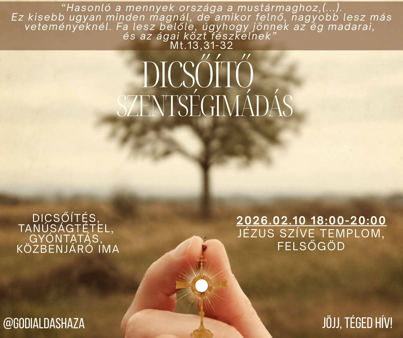 Meghívó Dicsőítő Szentségimádásra – 02.10. 18:00 – Gödi Áldás Háza